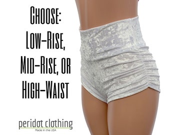 White Crushed Velvet Booty Shorts Ruched Rave Shorts Etsy Osterreich